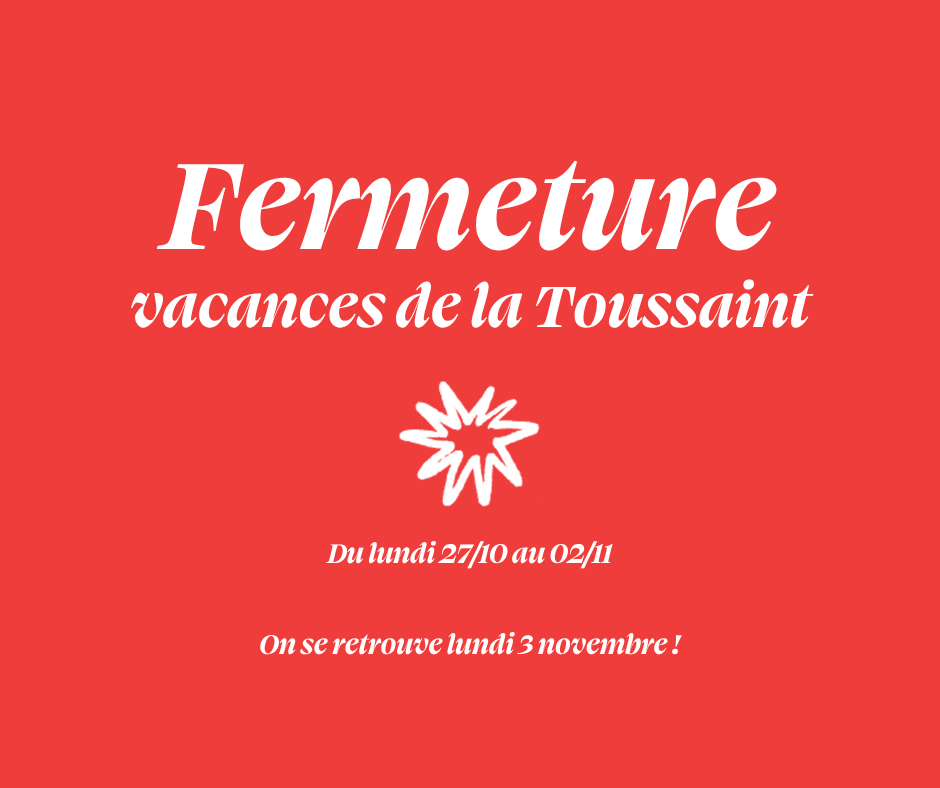 Nous serons fermés pour la deuxième semaine des vacances de la Toussaint, à savoir du lundi 27 octobre au dimanche 2 novembre 2025. On se retrouve lundi 3 novembre ! Pensez à réserver pour déguster nos délicieux plats d'automne !