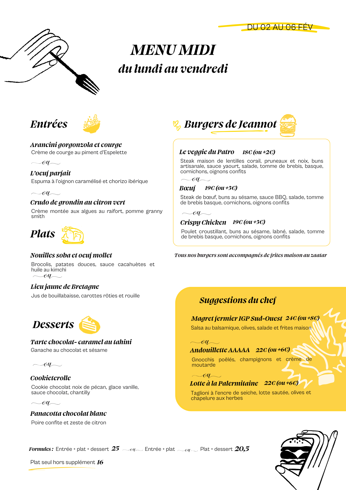 Le chef nous concocte une carte gourmande et saisonnière, suivez-vous sur Instagram pour avoir la carte du jour !
